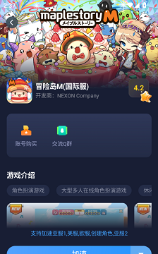 2、然后使用账号登录《野豹游戏加速器》,选择冒险岛M国际服并点击【加速】。