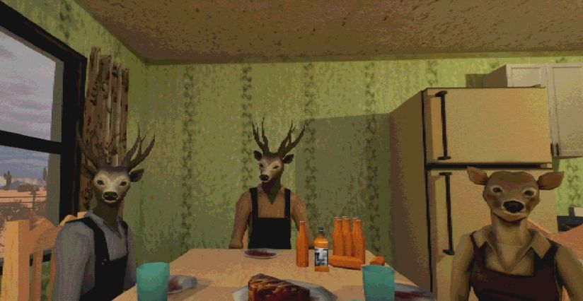 2、探索与解谜:游戏包含探索元素,例如寻找电池、解开环境谜题(如打开车库锁),以及与非玩家角色互动(如一家三口的鹿人家庭)。