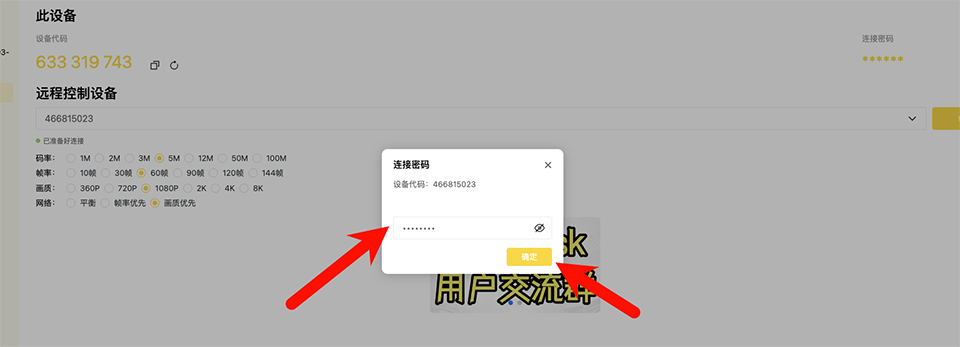 4、填写被控端的链接密码;