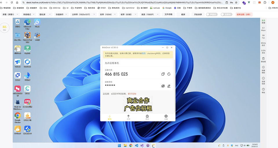 BilldDesk 官方版是开源免费的远程桌面控制软件,支持 Windows、macOS、Linux、Android 及网页端,任意设备都能控制其他终端,基于 WebRTC 技术实现低延迟传输,可自定义码率、帧率、分辨率,兼顾流畅性与画质,配套连接鉴权机制,支持开源代码审计,可自行部署服务器,避免数据经过第三方,BilldDesk 使用方法和其他同类软件基本一致,控制端输入被控制端的设备码和连接密码就能完成连接。