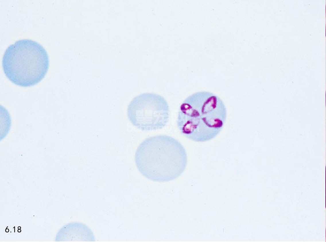 图6.18 两对巴贝斯虫形态不很常见,单个或单对时常见。
